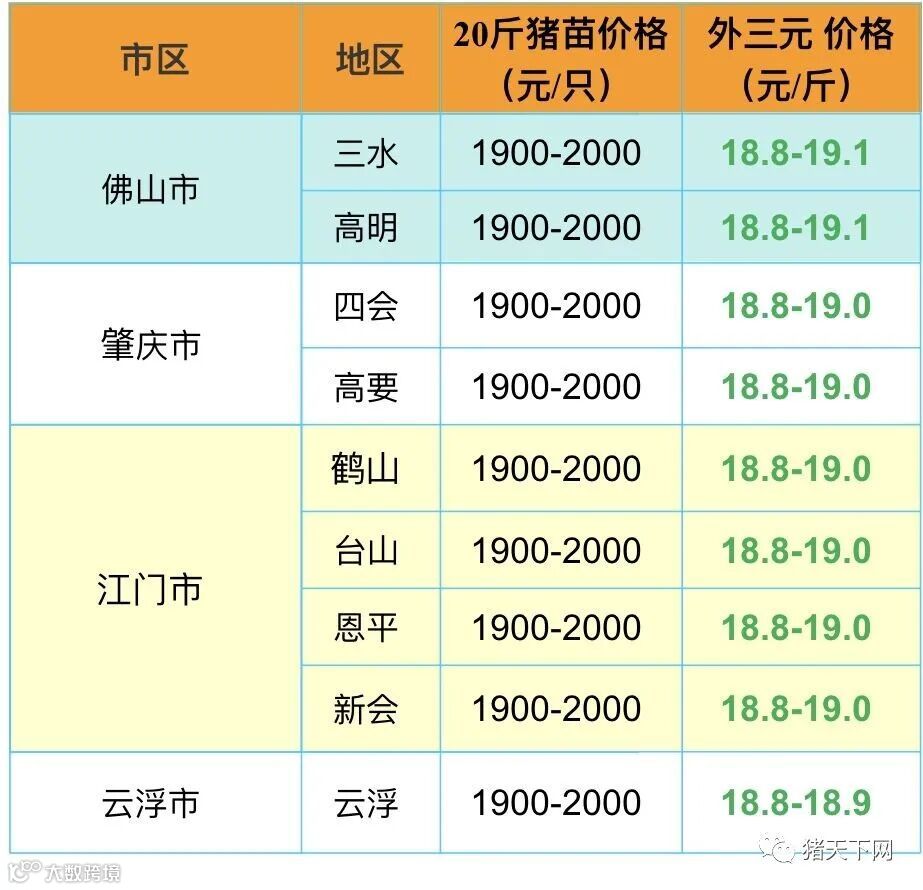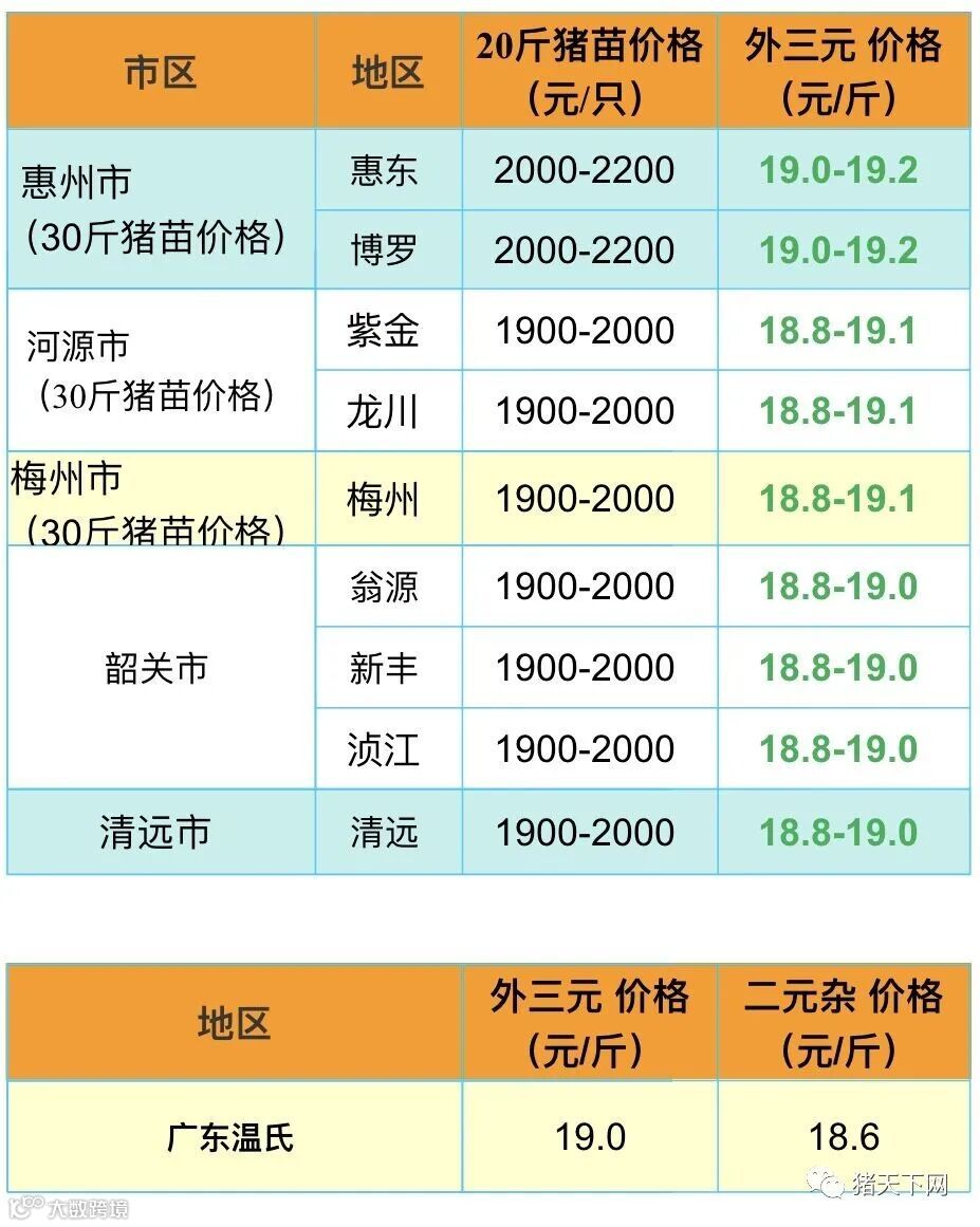 有红绿颜色部分是相对昨天有所变动的猪价;