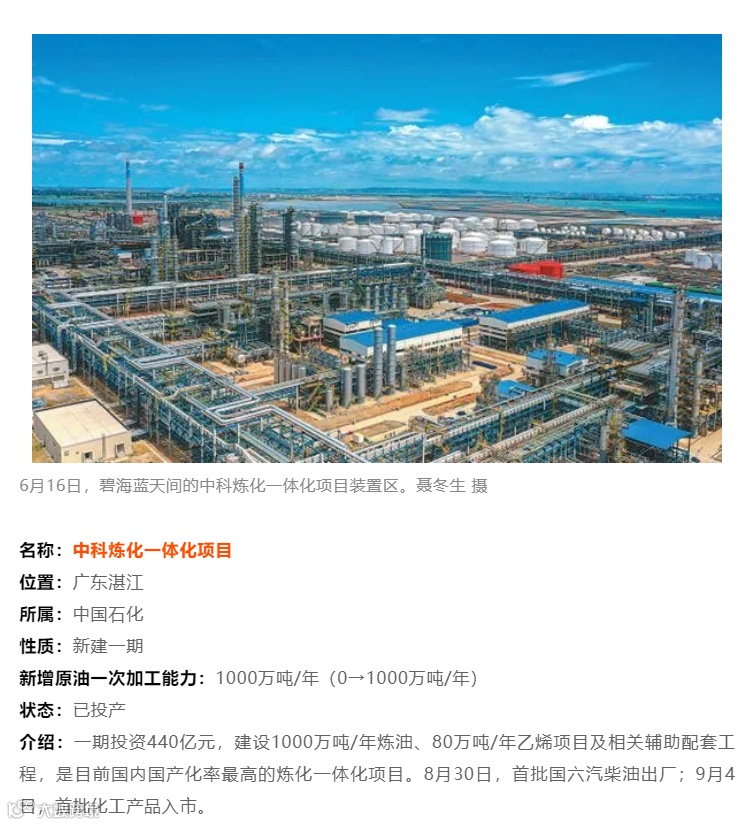 介绍:根据2017年的规划,该项目增加原油加工能力1500万吨/年、乙烯生产能力100万吨/年。工程完成后,茂湛炼化一体化基地的炼油化工生产规模将达到世界先进水平。