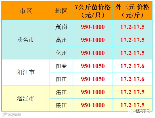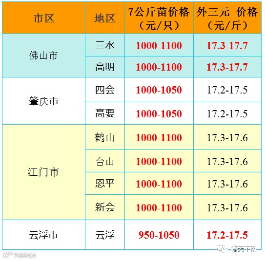 有红绿颜色部分是相对昨天有所变动的猪价;