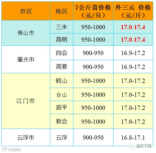 有红绿颜色部分是相对昨天有所变动的猪价;