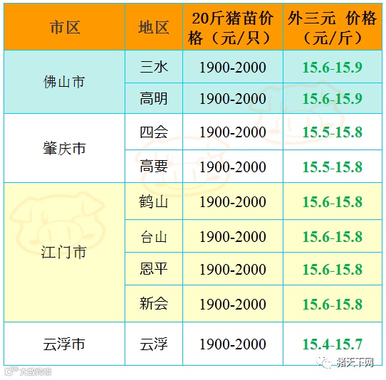 有红绿颜色部分是相对昨天有所变动的猪价;