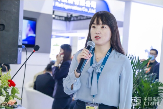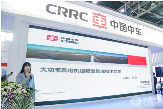 在2020年北京国际风能大会暨展览会(CWP 2020)的中国中车展台上,中车株洲电力机车研究所有限公司风电事业部高级设计师袁莹以“大功率风电机组箱变集成技术应用”为题,解读降低风电场建设成本,稳定提升发电量的箱变集成创新技术。