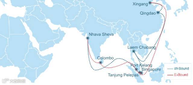 CIE航线挂靠港口顺序为:釜山–青岛–上海–蛇口–新加坡–巴生港–清奈–巴生港–新加坡–马尼拉北港–釜山,全程时间预计为35天。