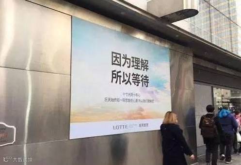 往日顾客盈门的韩国免税商店,一夜之间变得门可罗雀。乐天就在其免税店挂出了“因为理解,所以等待”的标语,希望以此示好中国游客。