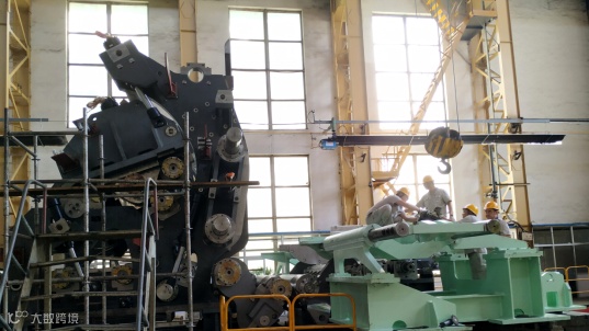 这是轧钢分公司生产的首台套热卷箱设备,标志着轧钢设备分公司在热卷箱机组的设计和制造方面跨上一个新台阶。