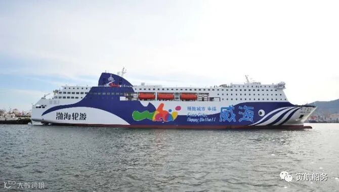 船体外部设计新颖,整个船身以巨型“鲲”为依托,同时将“精致城市、幸福威海”城市标志与渤海轮渡集团公司标志巧妙布局,使浓厚的威海地域文化特点和古老的航海文化有机融合,既凸显了威海开放、包容、进取、人文、宜居的城市特点,同时也彰显了渤海轮渡集团敢为天下先、拼搏进取的开拓精神。