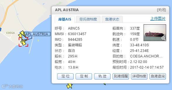 该船目前服务于亚洲-西非的ASAFGR航线,事发时航次为:APL AUSTRIA 1894FW,有货在其上的货代及货主要留意了。
