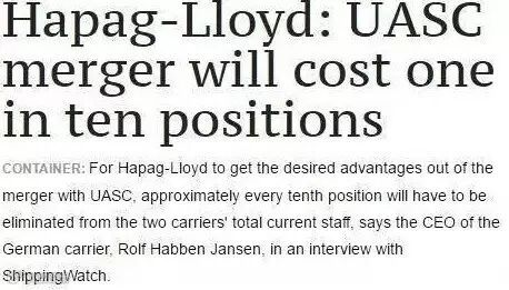 韩进CEO的举动让人动容,但是目前航运界的形势可能让其他的航运企业也是爱莫能助,因为很多的航运企业也正在裁员。在经历了这个最长的低谷期之后,航运界掀起了一波并购潮,而随着并购而来的是裁员。