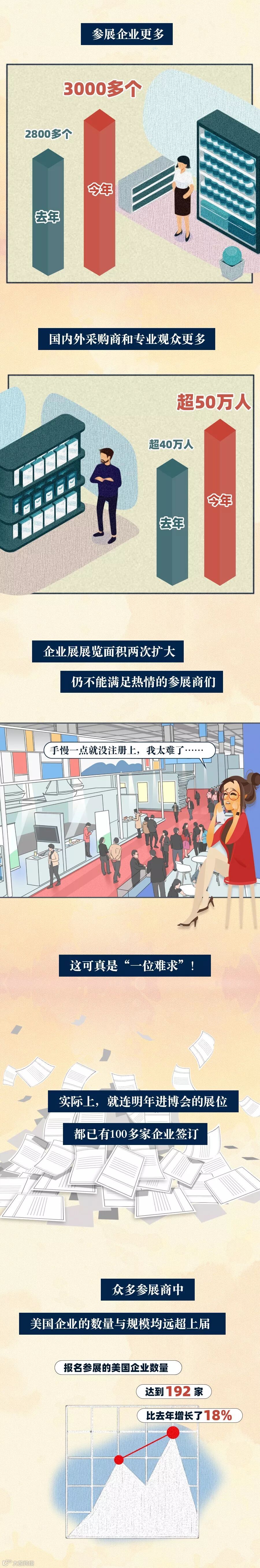 本届进博会,参展的国家和地区以及参展企业数量均超过首届。企业展两次扩容,仍难以满足热情的各国参展商。一家法国参展企业的负责人表示,进博会企业展“一位难求”,幸好当初下手早。