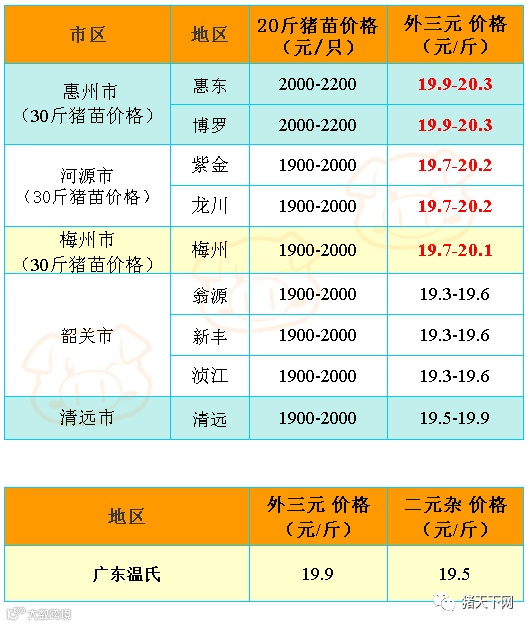 有红绿颜色部分是相对昨天有所变动的猪价;