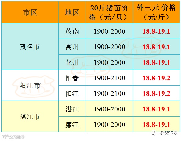有红绿颜色部分是相对昨天有所变动的猪价;