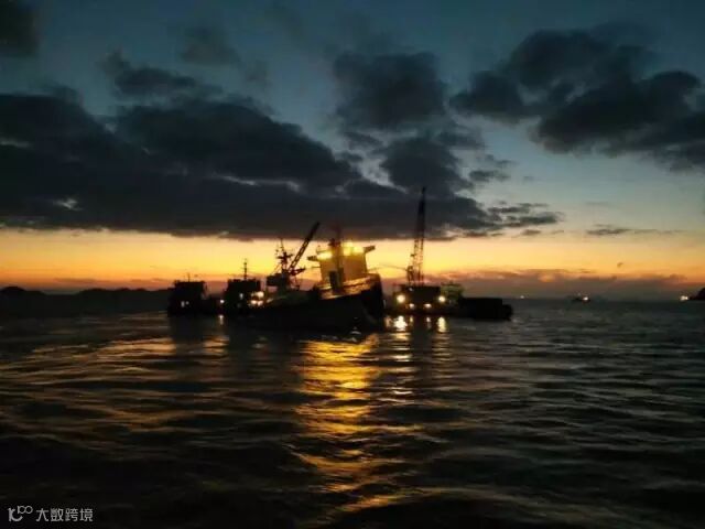 2、4艘过驳作业船根据船舶状态和海况连夜过驳。