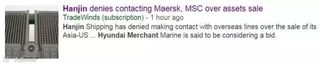 据贸易风最新报道指出,韩进拒绝马士基、MSC接管其亚美航线的网络及销售,而现代商船还在考虑中。