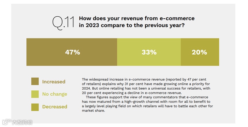 2月14日,会计专业服务商毕马威发布的《2024澳大利亚零售业展望(Australian retail outlook 2024)》显示,2023年47%的受访零售商表示电商收入增长,同时63%的受访者表示2024年零售商最大的挑战是“消费者信心”。
