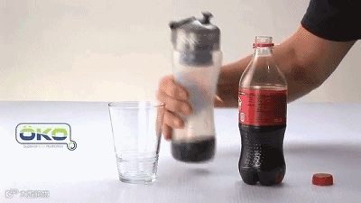 下面一起来看看 OKO 滤水壶过滤可乐的视频吧