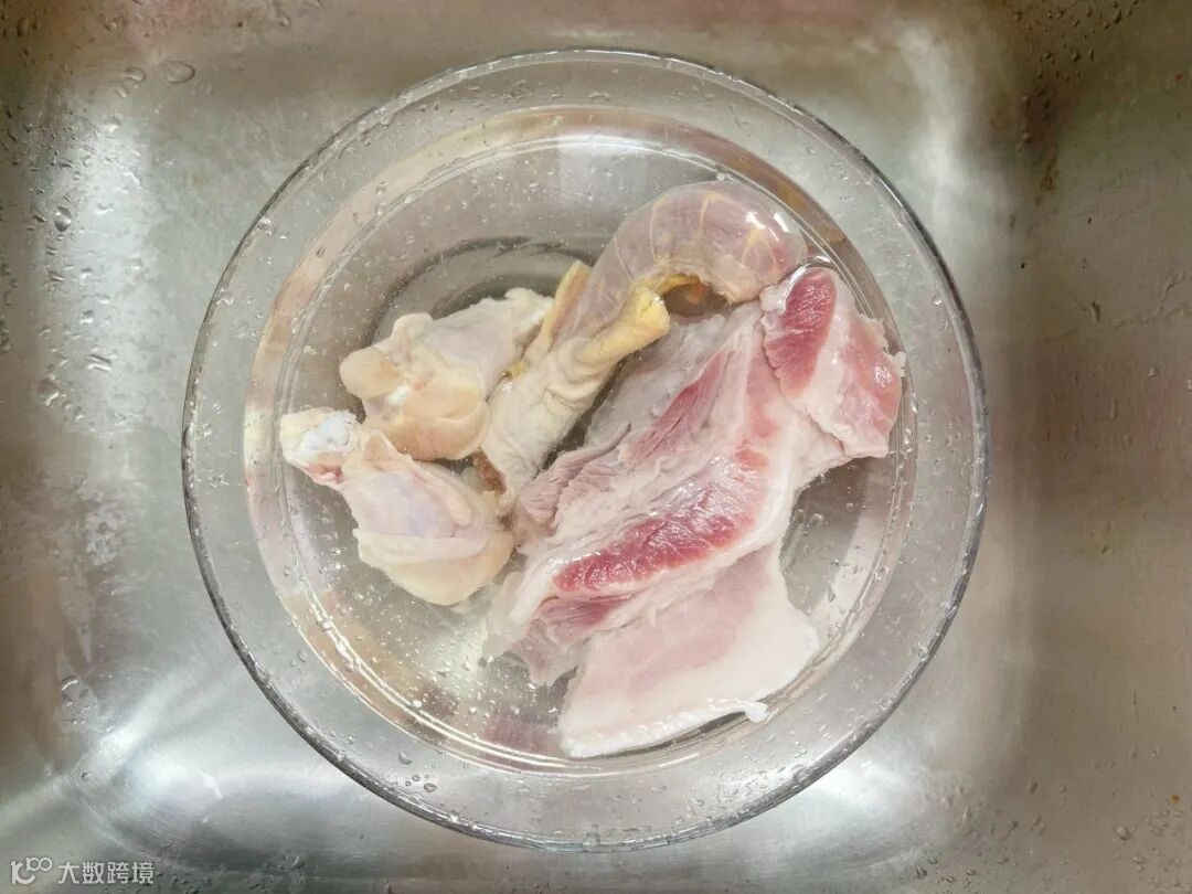 先将所需的食材用清水+料酒浸泡半小时,泡出血水,这样有助于食材更好地去除腥味。