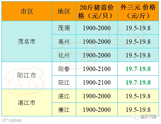 有红绿颜色部分是相对昨天有所变动的猪价;