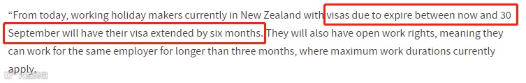 他宣布,目前人在新西兰,且打工度假签证有效期即将在4月4日至9月30日期间到期人士,他们的签证将延长6个月。