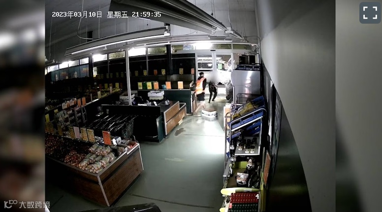 最新披露的一段监控视频显示,奥克兰一家果蔬店在3月10日晚上遭到破门盗窃,三人破坏了玻璃门后进入店内。