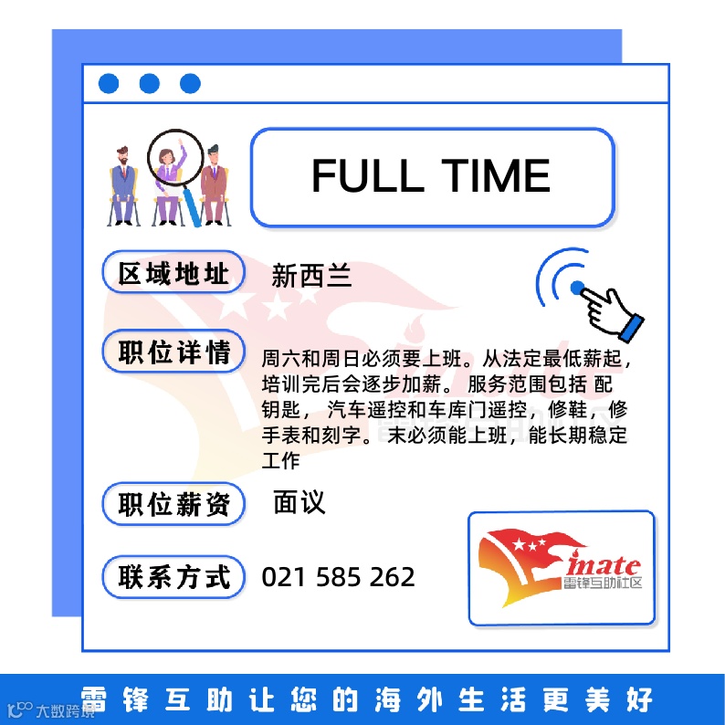 新西兰便民信息|招聘|前台、保姆、行政助理、服务员
