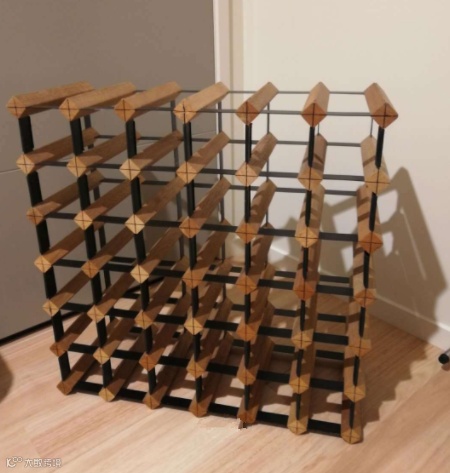 红酒架:9成新,$40, 可以放42瓶750ml的红酒,酒架的尺寸是61x23.5x61cm, 材料是松木&铁。