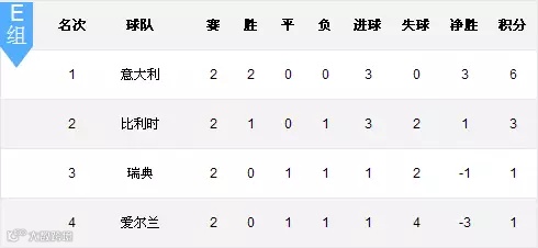 欧洲杯积分榜(截止6.21 5:00)