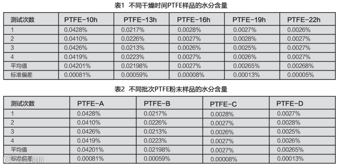 PTFE聚四氟乙烯微粉的含水量在0.001%~0.05%,如何快速准确地测试水分含量,一直是困扰大家的一个问题。
