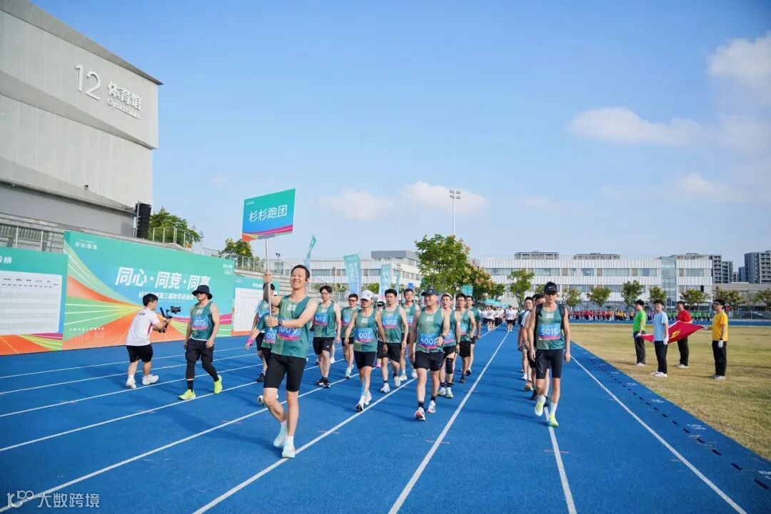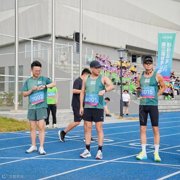 看!那是我们的明星社团——杉杉跑团!这支成立于2021年7月,拥有36位“风之子”的团队,可是各大马拉松赛道的常客。今天主场作战,架势一看就是来霸屏的!