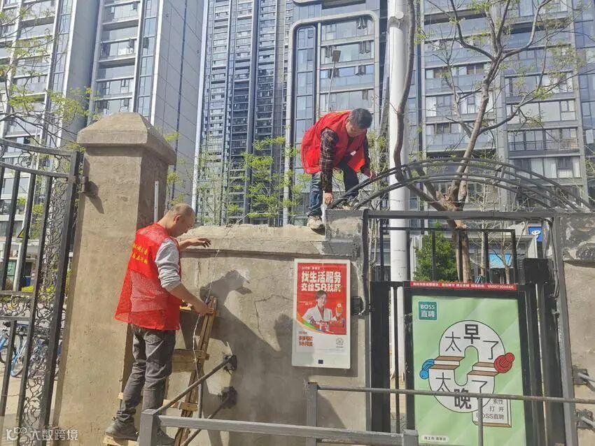 施工过程中,下沉党员、业委会代表、物业经理与社区工作者组成联合监督组,全程跟进施工进度。党员们巡查施工现场,重点监督钢丝刺绳安装密度、防锈处理等关键环节;业委会成员协调解决施工噪音、材料堆放等居民关切问题;物业公司负责现场秩序维护及垃圾清运,保障施工环境整洁。四方合力确保工程按期保质完成。