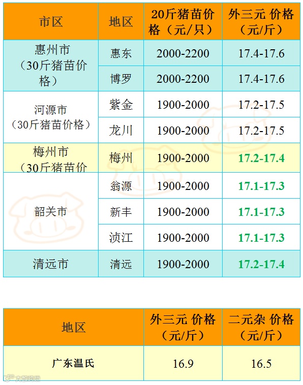 备注:猪价为喂湿料猪至喂干料猪出栏价格;