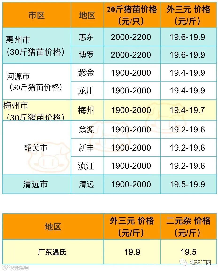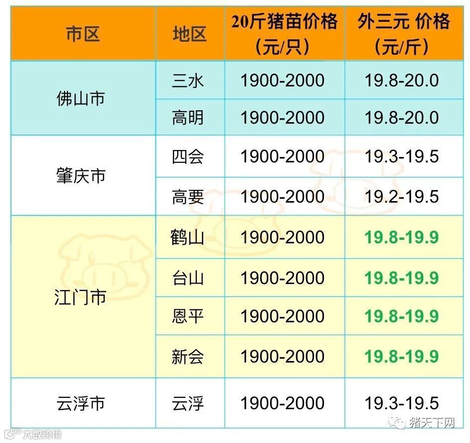 有红绿颜色部分是相对昨天有所变动的猪价;