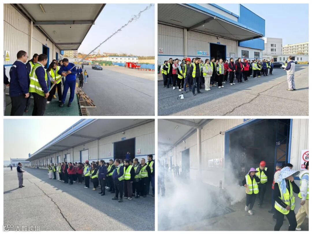 公司联合园区入驻单位德邦、京东、外仓员工以及园区食堂、物业、装卸等开展消防演练,强化火灾应急能力,包括灭火器、消火栓的使用,提高全员疏散与消防应急处置技能,公司总经理现场发表动员讲话。