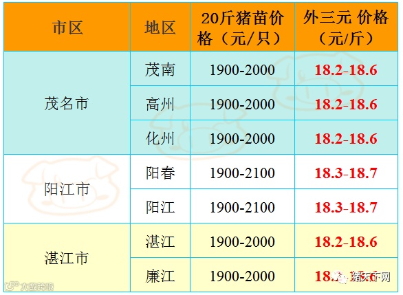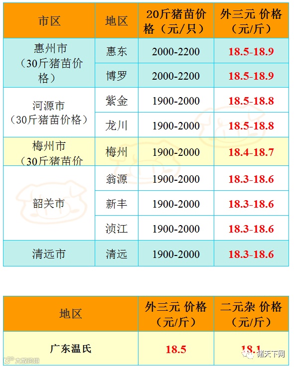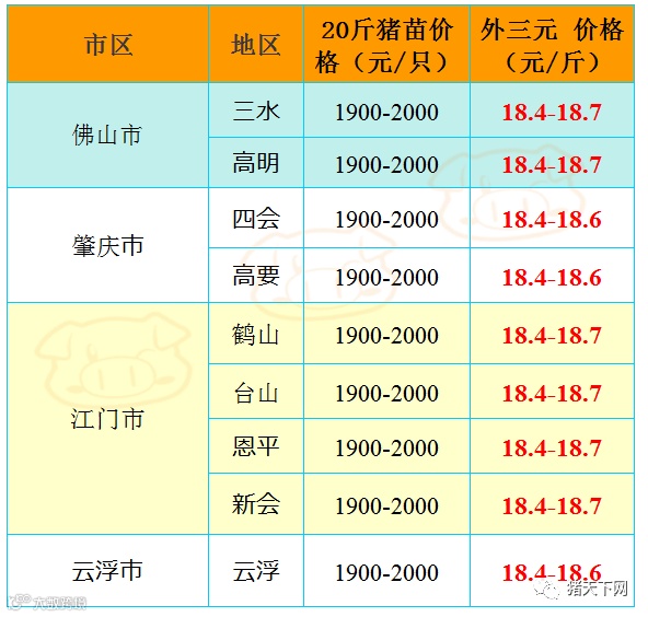 有红绿颜色部分是相对昨天有所变动的猪价;