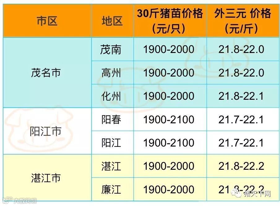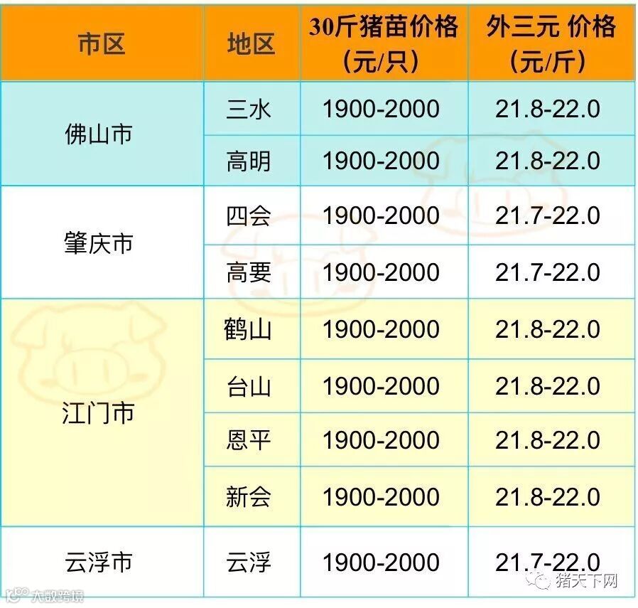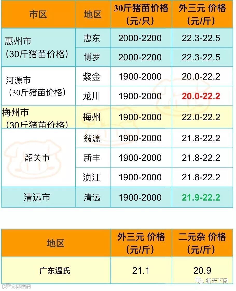 有红绿颜色部分是相对昨天有所变动的猪价;