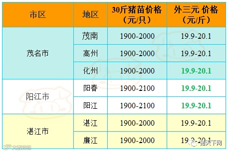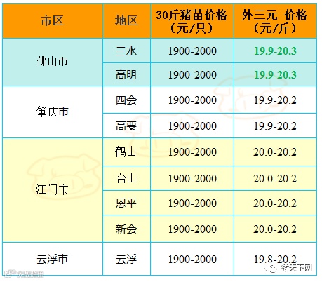 有红绿颜色部分是相对昨天有所变动的猪价;