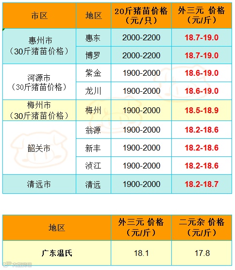 有红绿颜色部分是相对昨天有所变动的猪价;