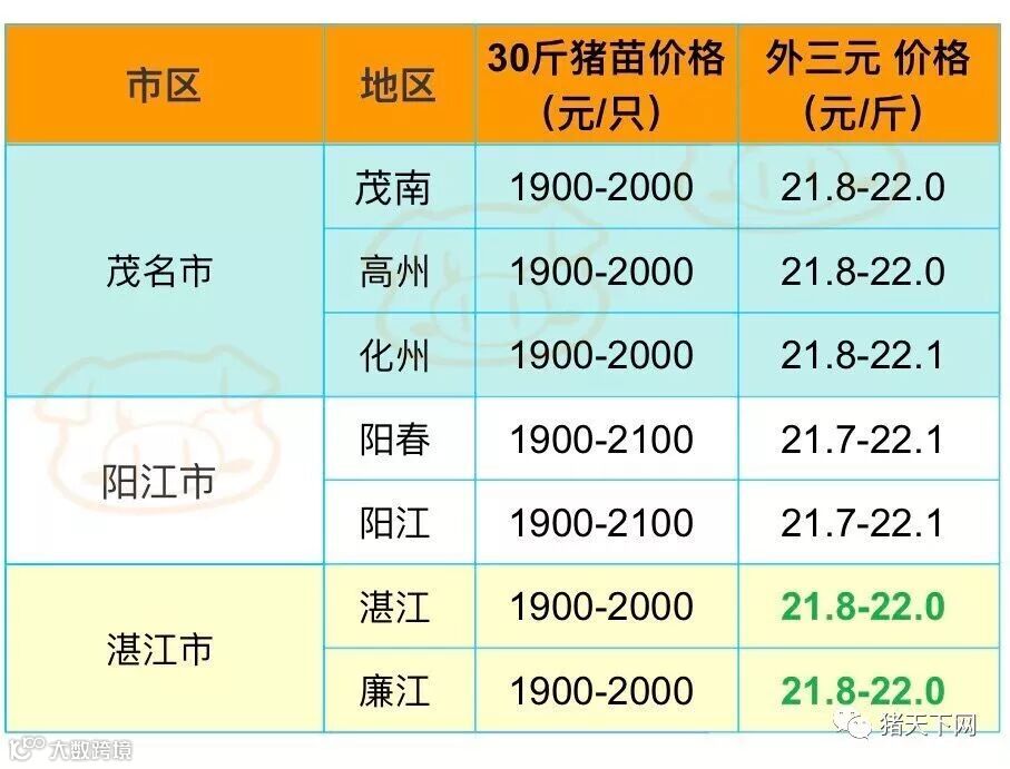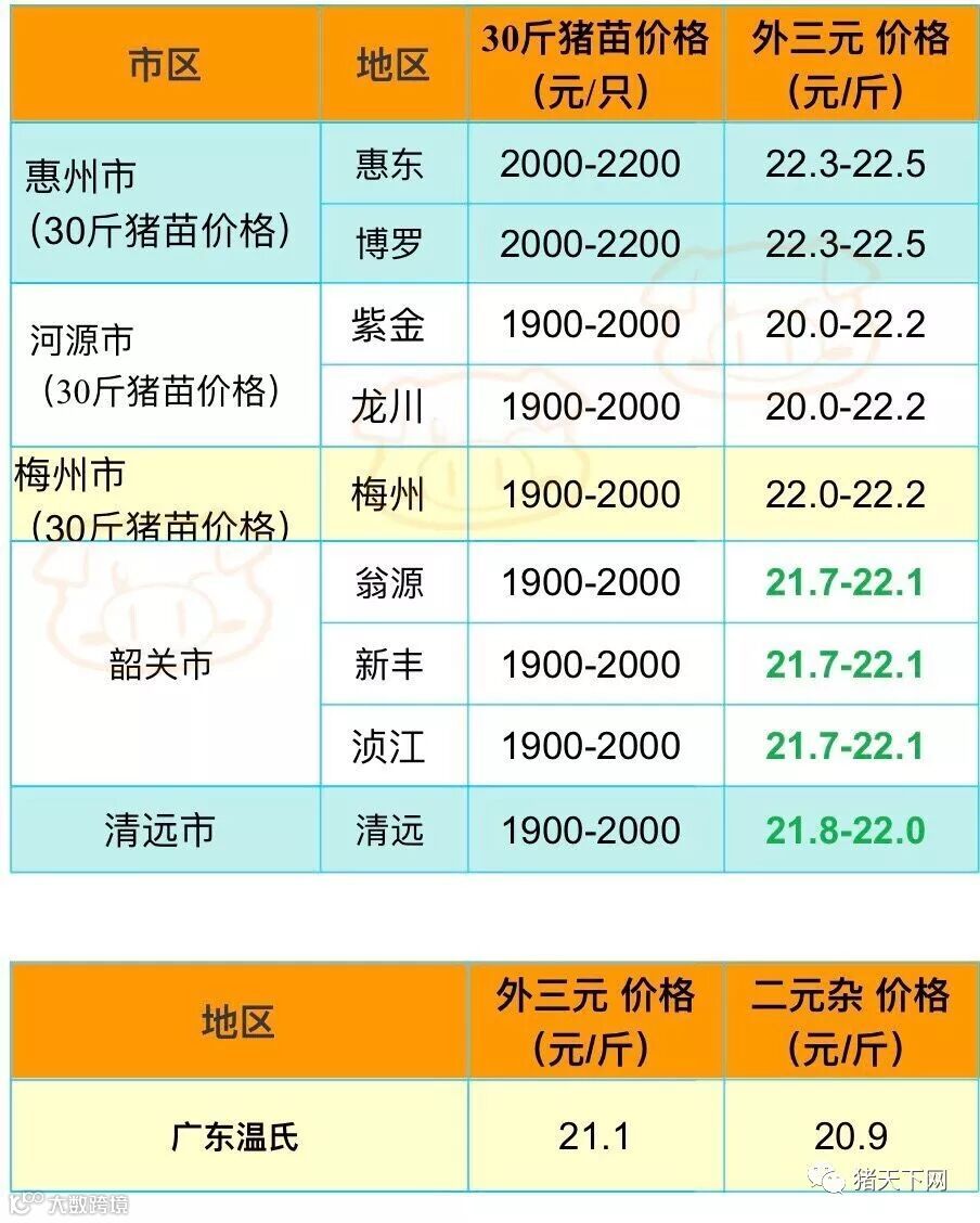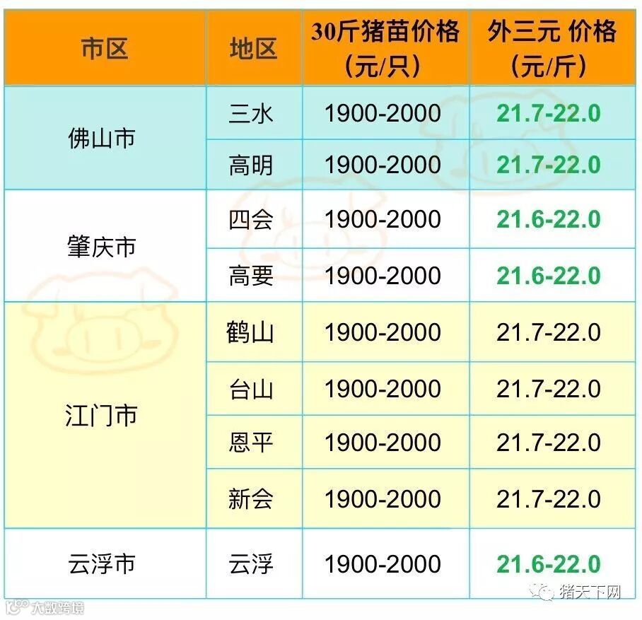 有红绿颜色部分是相对昨天有所变动的猪价;
