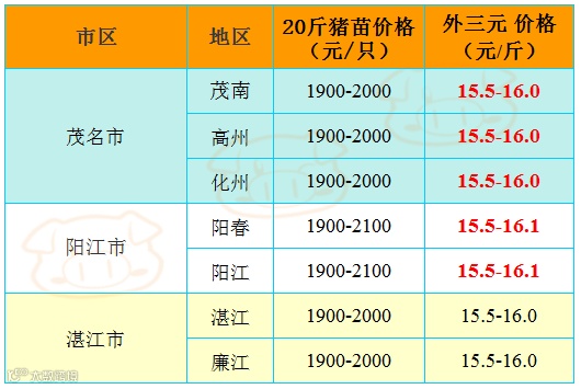 红色猪价是指比前一天价格高;