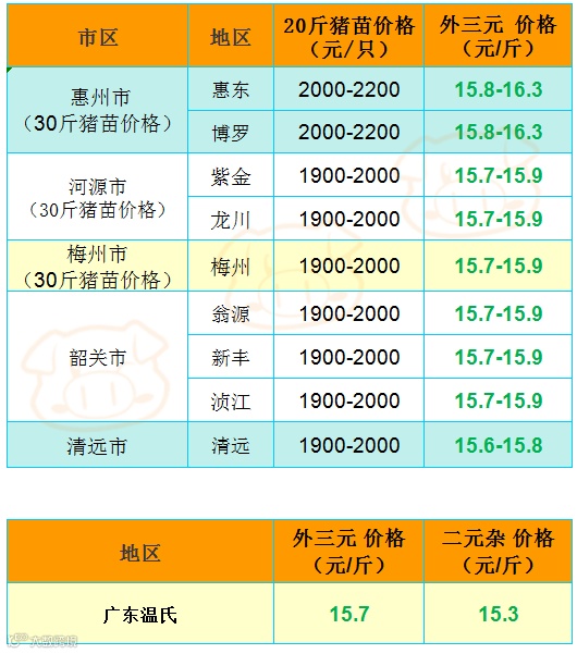 备注:猪价为喂湿料猪至喂干料猪出栏价格;