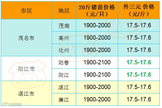 有红绿颜色部分是相对昨天有所变动的猪价;
