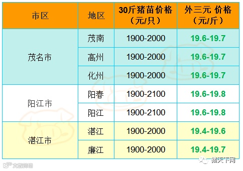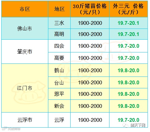 有红绿颜色部分是相对昨天有所变动的猪价;