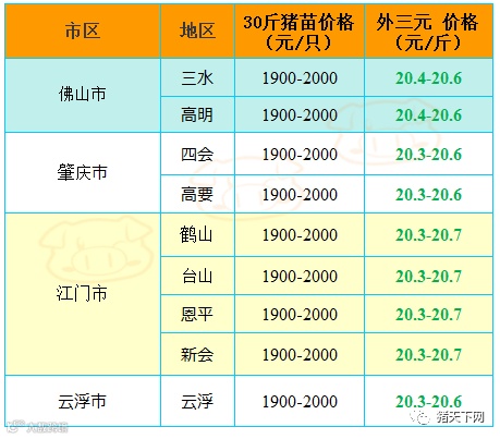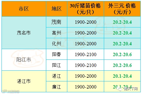 有红绿颜色部分是相对昨天有所变动的猪价;