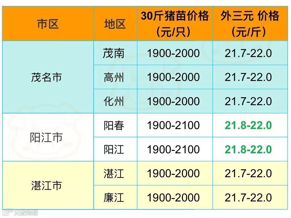 有红绿颜色部分是相对昨天有所变动的猪价;