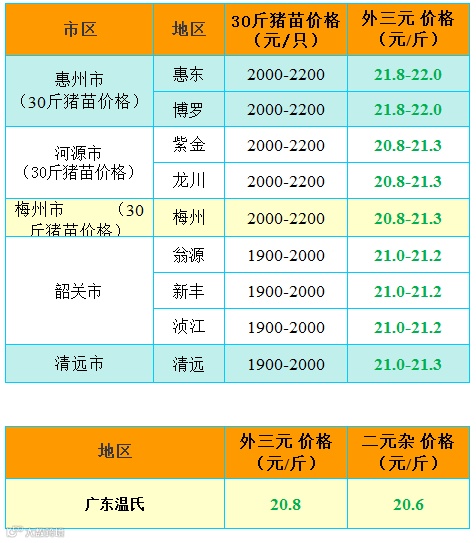 备注:猪价为喂湿料猪至喂干料猪出栏价格;