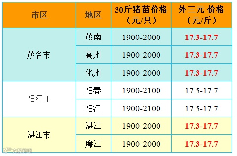 红色猪价是指比前一天价格高;