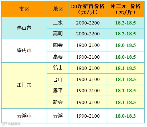 备注:猪价为喂湿料猪至喂干料猪出栏价格;