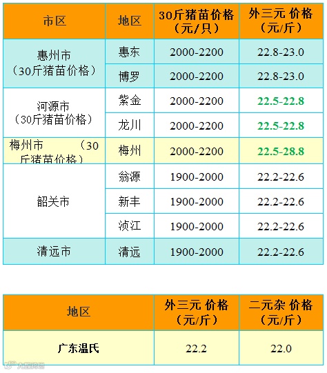 有红绿颜色部分是相对昨天有所变动的猪价;