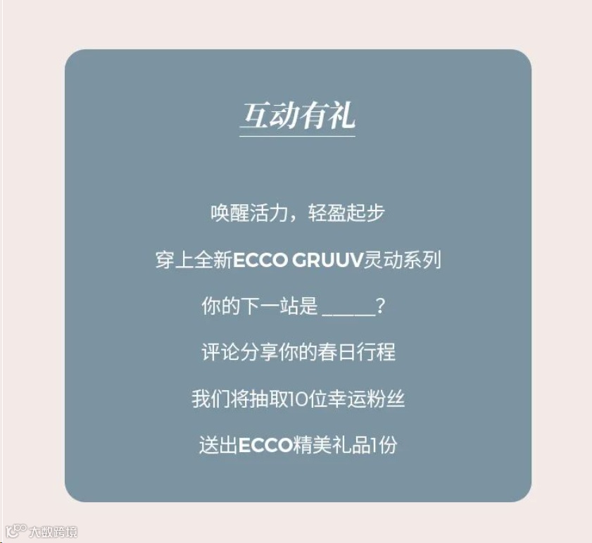 ECCO成立于1963年,作为北欧丹麦鞋履及皮具品牌,一直致力于将舒适与风格完美结合。其成功源于符合人体工学的产品设计及优质皮革。ECCO 是世界上为数不多完全达到资源垂直整合模式的制鞋公司之一,采用自上而下的营运模式,每个环节都直接监管.