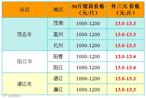 红色猪价是指比前一天价格高;