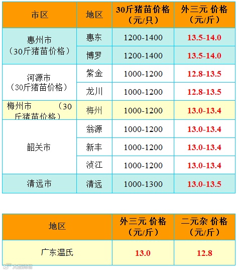 备注:猪价为喂湿料猪至喂干料猪出栏价格;